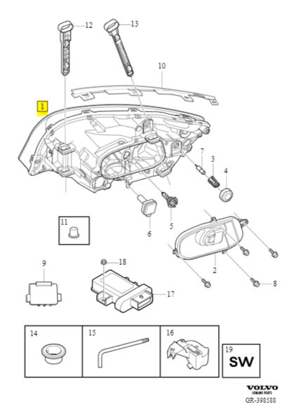 Uszczelnienie lewego lusterka Volvo OE XC60 (-17)